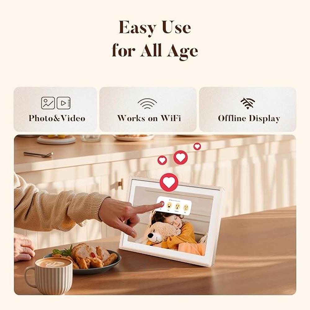 - Easy Setup, Easy to Use Great for all ages. Simply plug it in, connect to Wi-Fi, and share. Use the app to add photos and videos from your phone to the frame within seconds, privately and securely