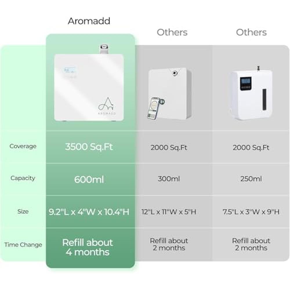 Experience unparalleled fragrance distribution with our 2025 Upgraded 3500 Sq.Ft Smart Scent Machine. Seamlessly integrating with your HVAC system, this cutting-edge device provides whole-house aroma capabilities and hotel collection diffuser functionality. Boasting a 600ML capacity and innovative cold air tech, our diffuser offers continuous fragrance without the need for water. Perfect for creating a relaxing atmosphere in your home or a refreshing ambiance in your office, Aromadd's diffuser will elevate your space with a five-star hotel-like fragrance experience.