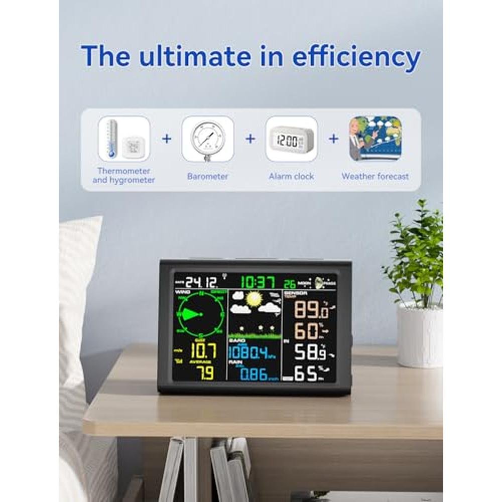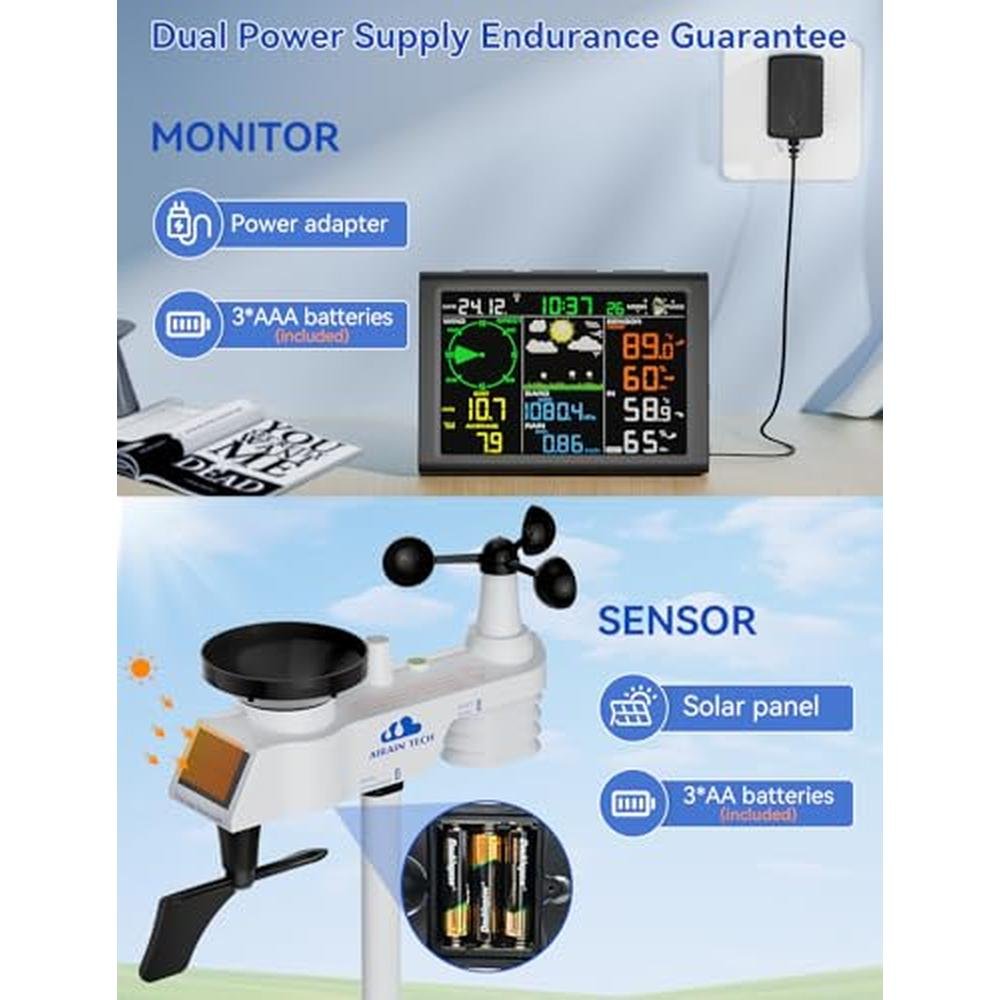 AIRAIN TECH 10-in-1 Wireless Weather Station,with Outdoor Sensor,Rain Gauge,Atomic Clock,Wind Speed/Wind Direction,Indoor Temperature and Humidity,Barometer,Weather Forecast, etc.(NO WiFi)