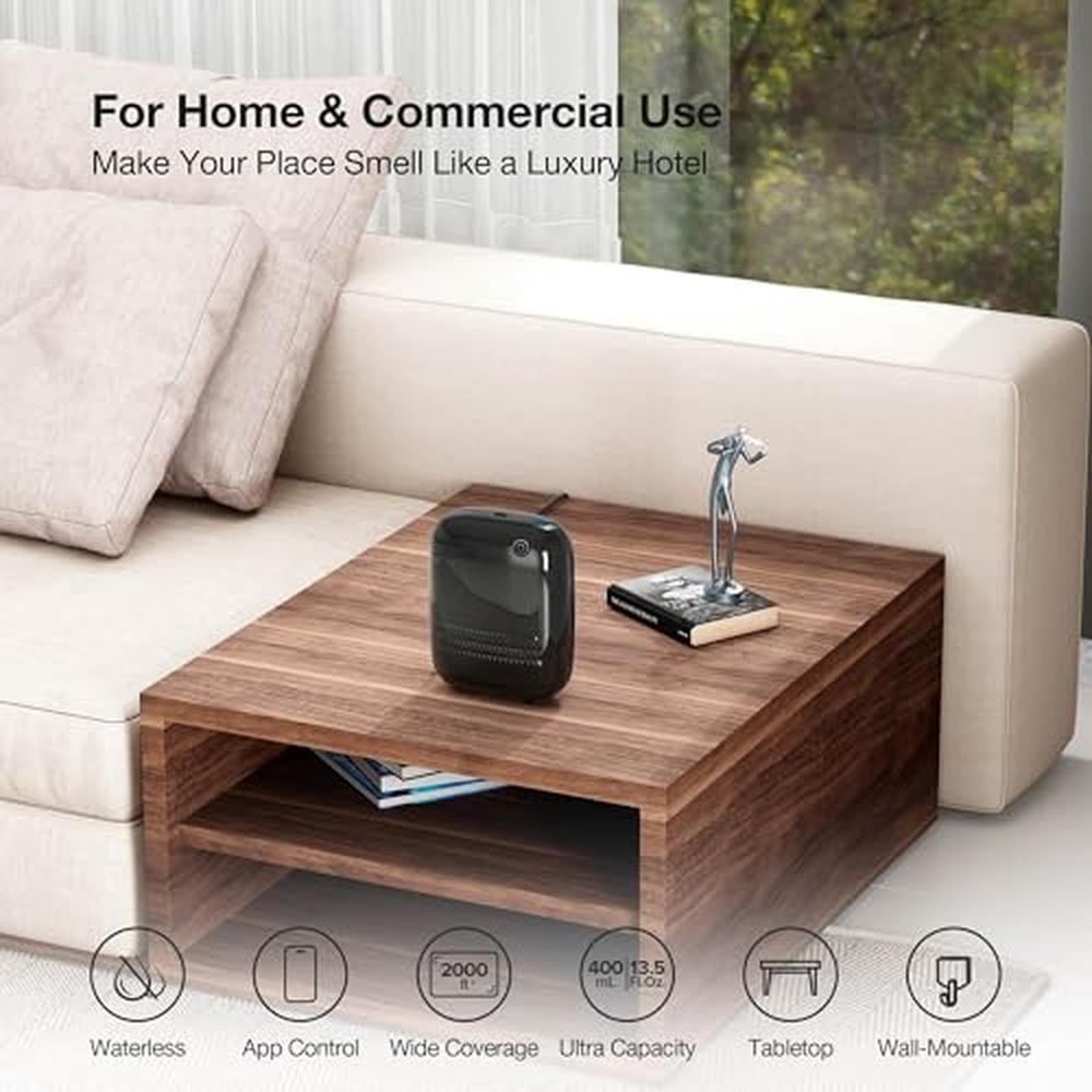 | Special Feature | Custom Scheduling via App, For large spaces up to 2000 sq.ft., Large Capacity 13.5 fl. oz (400 mL), Plug-in Options and Wall-Mounted, Waterless Technology and Cold Diffusion |