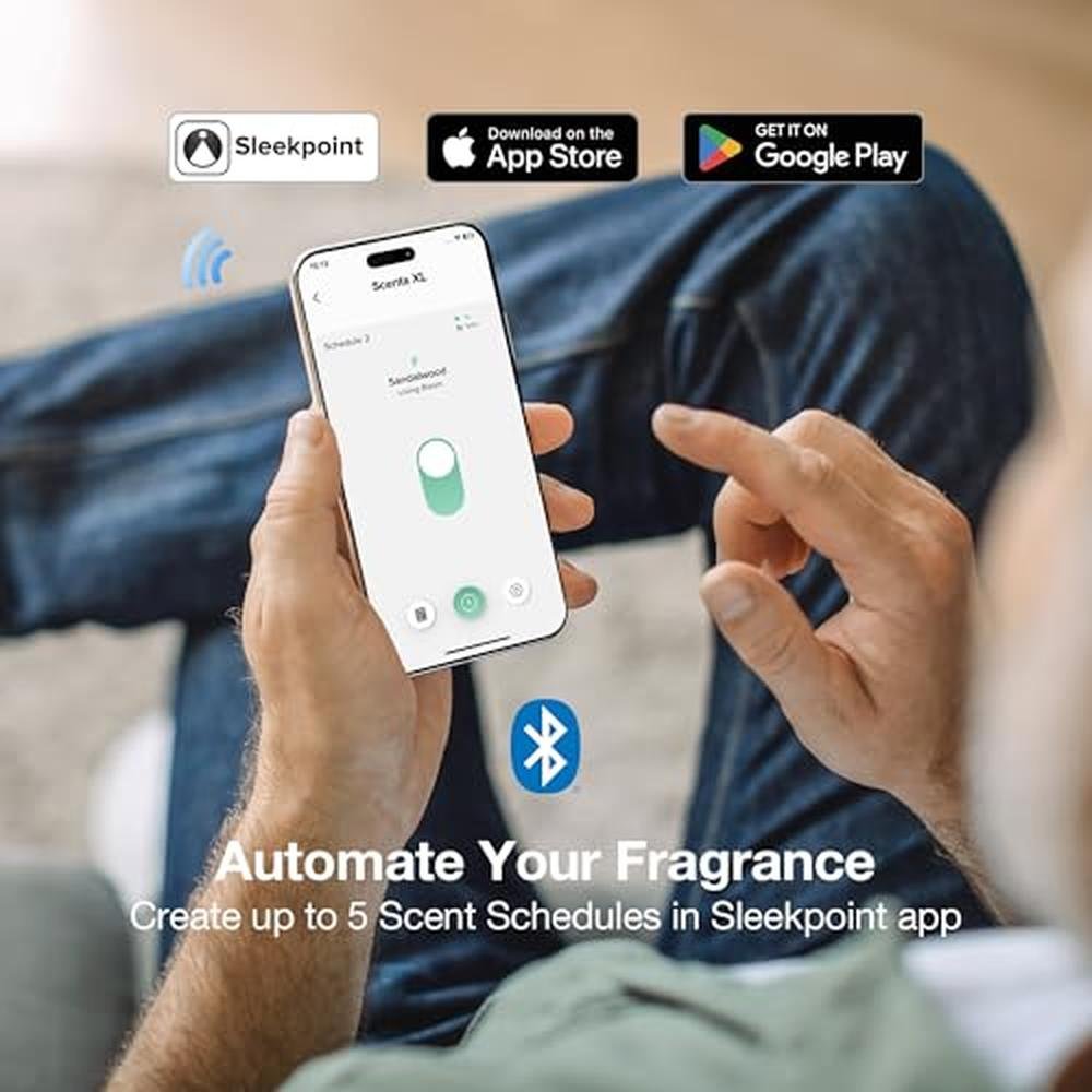 • Smart Control: Seamlessly manage settings via Bluetooth and the Sleekpoint App (iOS/Android), allowing you to schedule up to 5 diffusing scenes, adjust timers, and control fan speed for customized ambiance.