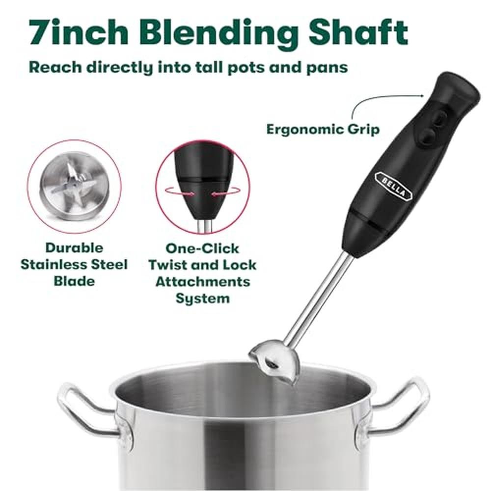 Bella Immersion Hand Blender | BELLA Portable Mixer with Whisk Attachment | Electric Handheld Juicer for Smoothies and Baby Food