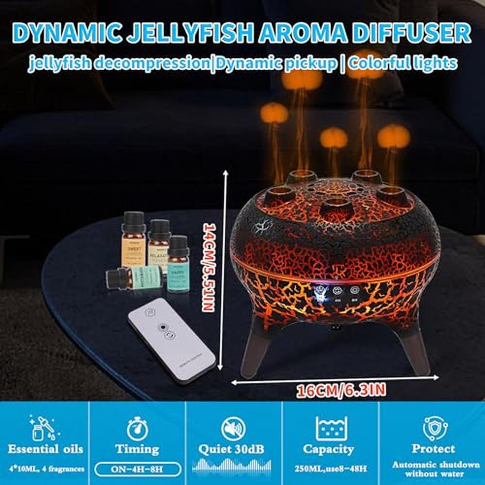High-End Aroma Diffuser | BOHOFAM Jellyfish Essential Oil Diffuser | 7 Colorful Lights & 4 Hotel Collection Oils | Sleek Black Design