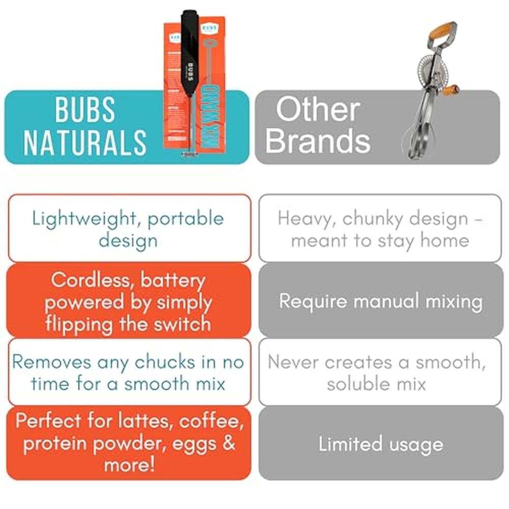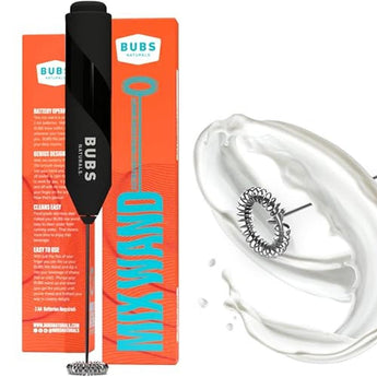 | Included Components | BUBS Naturals Mix Wand - Handheld Milk Frother - Lattes, Coffee, Cappuccino, Frappes, Hot Chocolate Blender - Portable Protein Powder, Omelet, Egg, Shakes, Smoothies Mixer - Food Grade Stainless Steel |