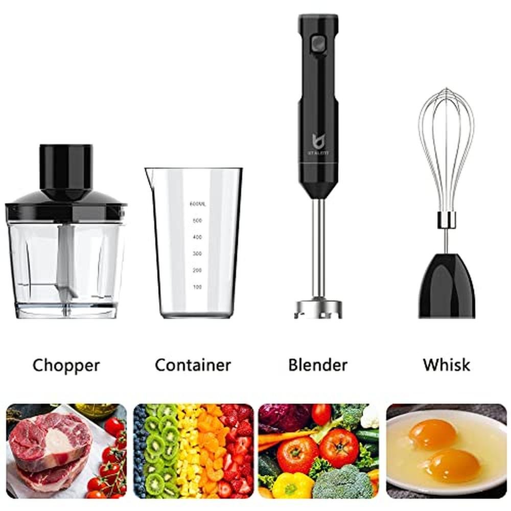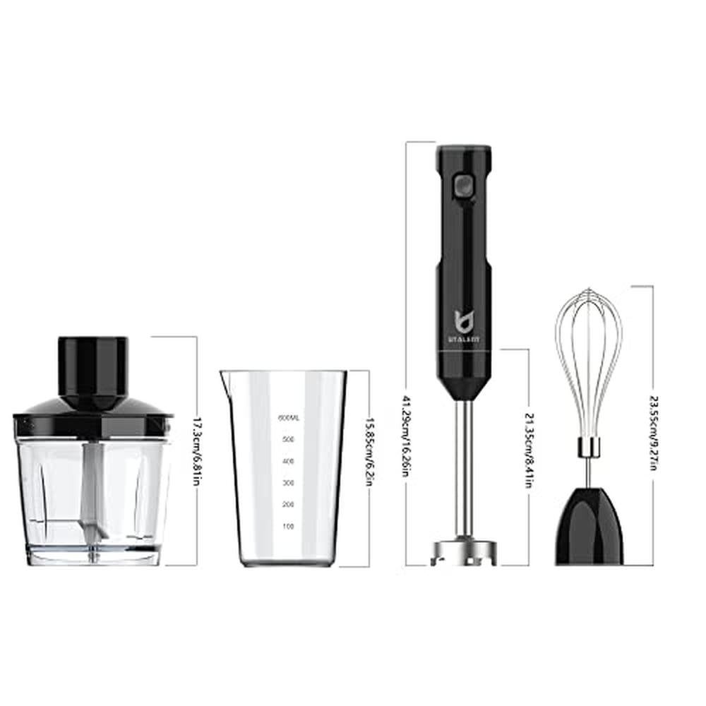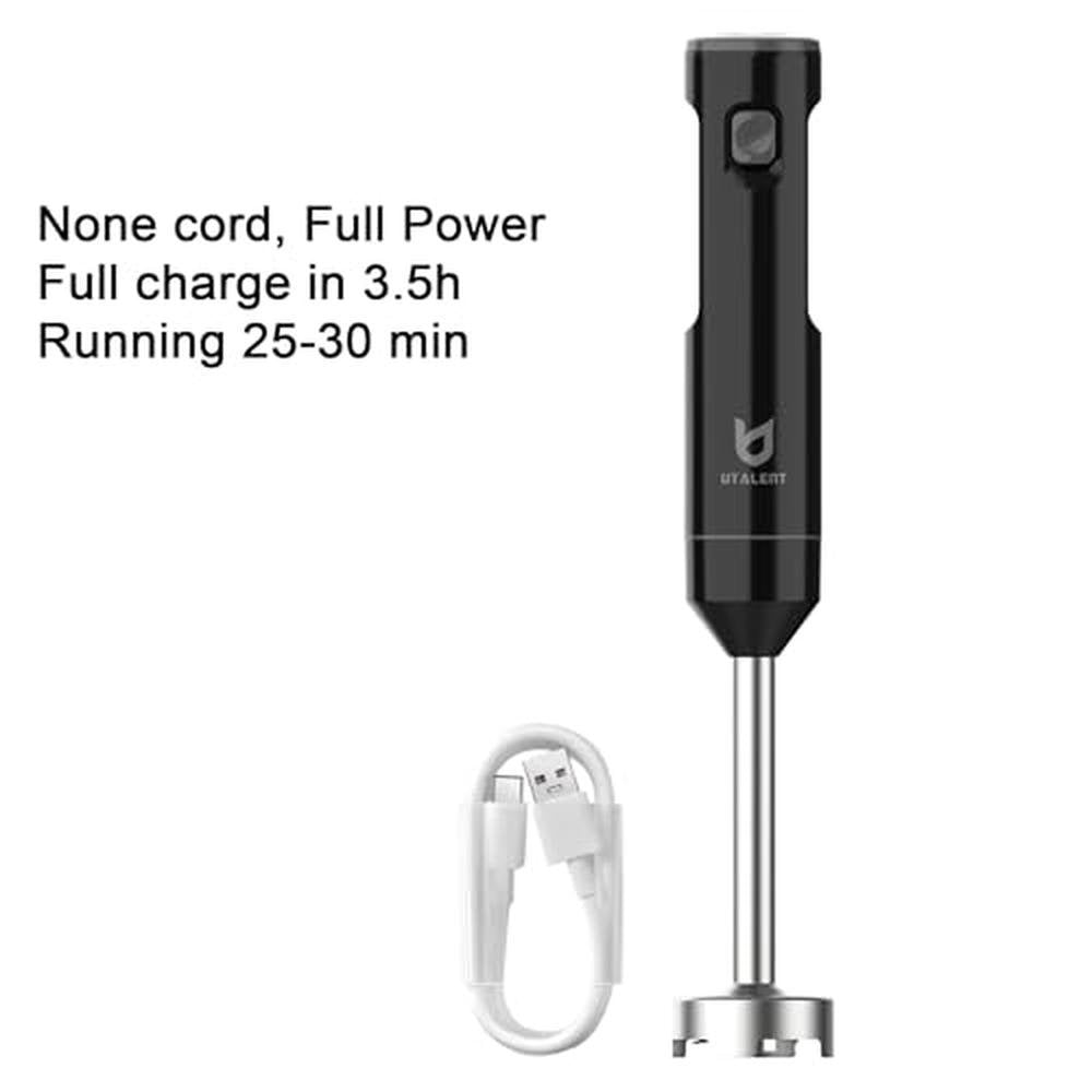 Cordless Hand Blender | UTALENT Variable Speed Immersion Blender | Rechargeable with 500ml Chopper and 600ml Container for Smoothies and Soups