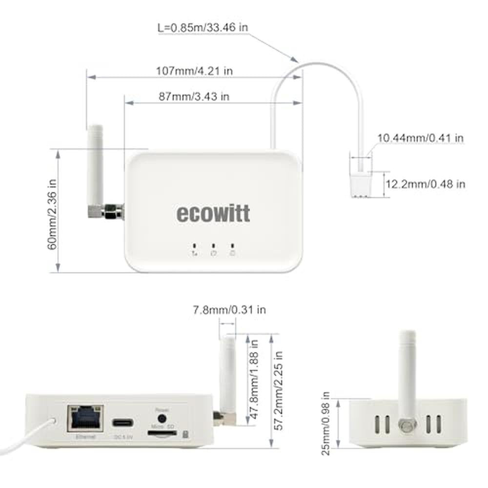 • Upgraded Weather Station Gateway GW3000: The Ecowitt GW3000 Wi-Fi gateway has built-in 3-in-1 sensors for temperature-humidity/atmospheric to measure the indoor data, and comes with an additional 0.9 m/2.95 ft. USB Power Extension Cord with Type_C interface for the power supply. Designed with a WLAN port and an SD card port, it can be used directly over a network cable to avoid the pitfalls of unstable WiFi and can store data on an SD card for data transfer.
