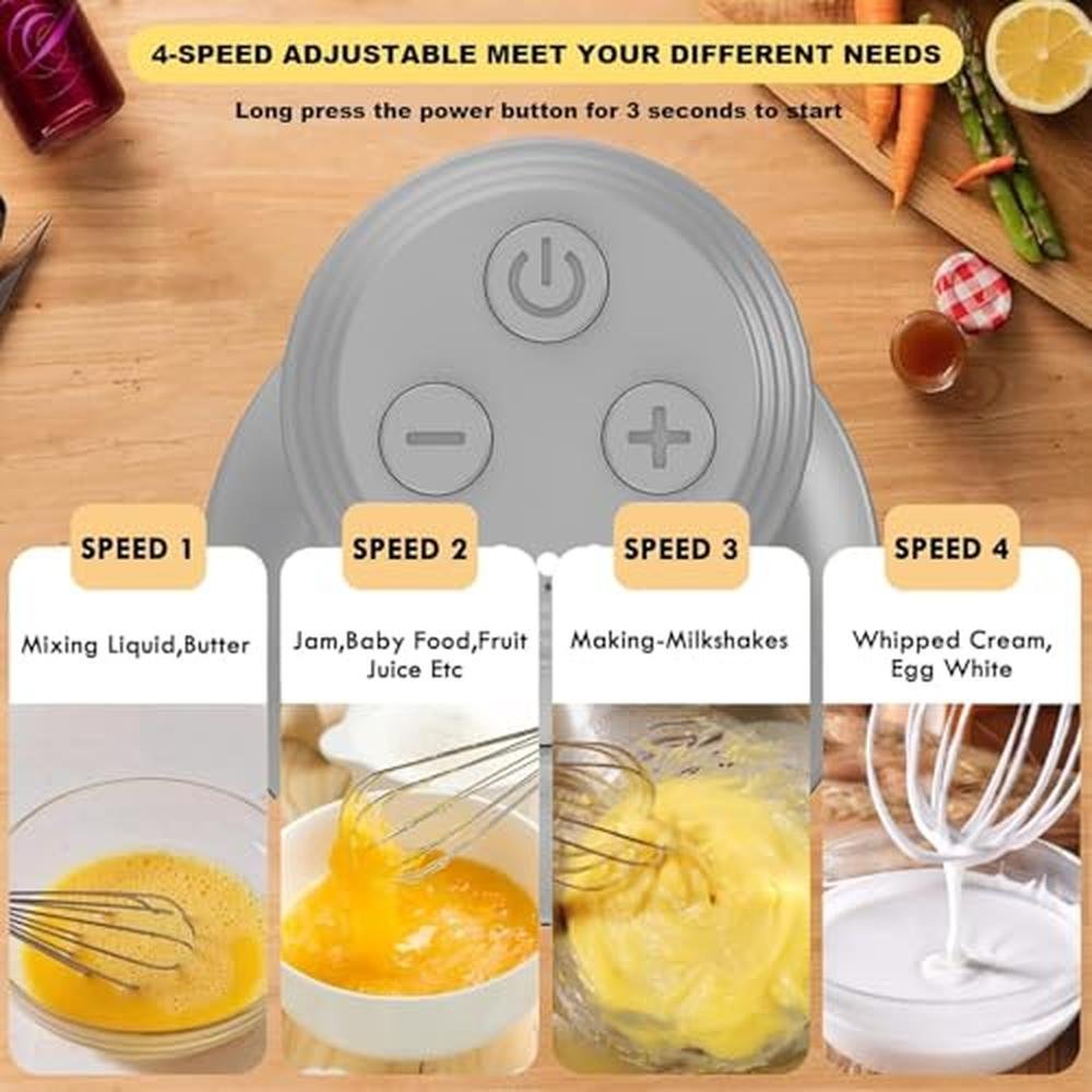 Electric Hand Mixer | Premium Brand Handheld Electric Whisk | 4-Speed Rechargeable Cordless Mini Food Processor