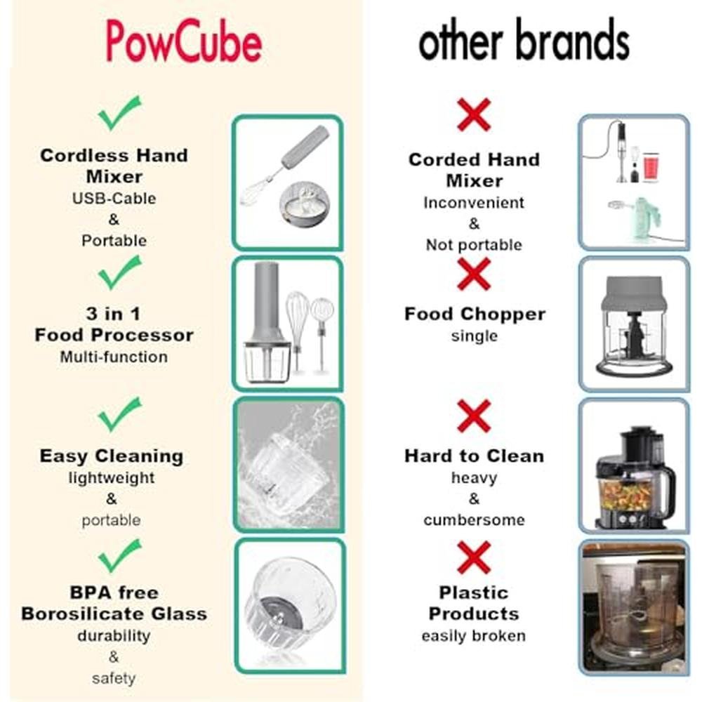 • Unlock the full potential of your mini food processor with our electric hand blender set, perfect for dicing, mincing, and pureeing ingredients with precision and ease