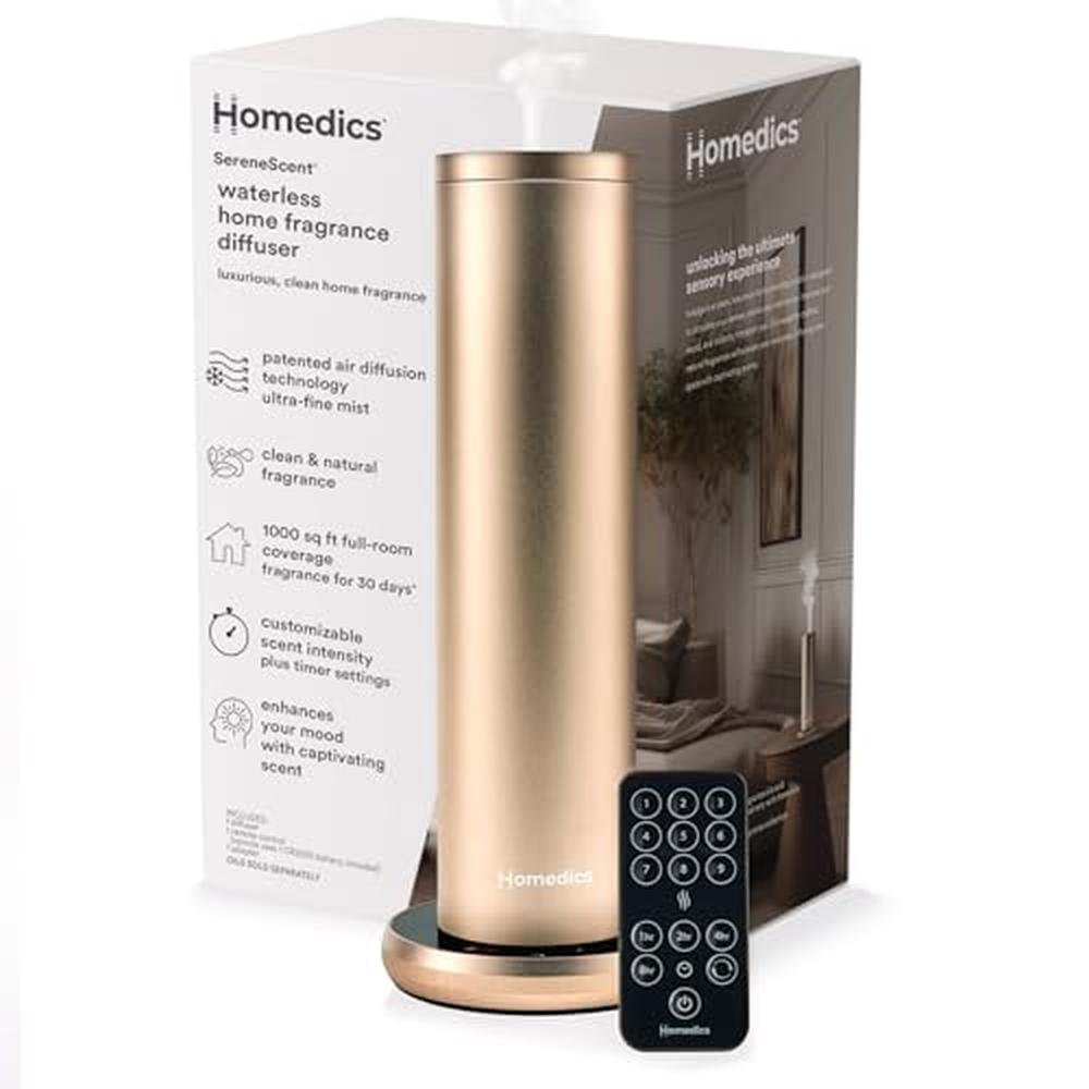 | Included Components | (1) Adapter, (1) Homedics SereneScent Waterless Home Fragrance Diffuser, (1) Remote Control |