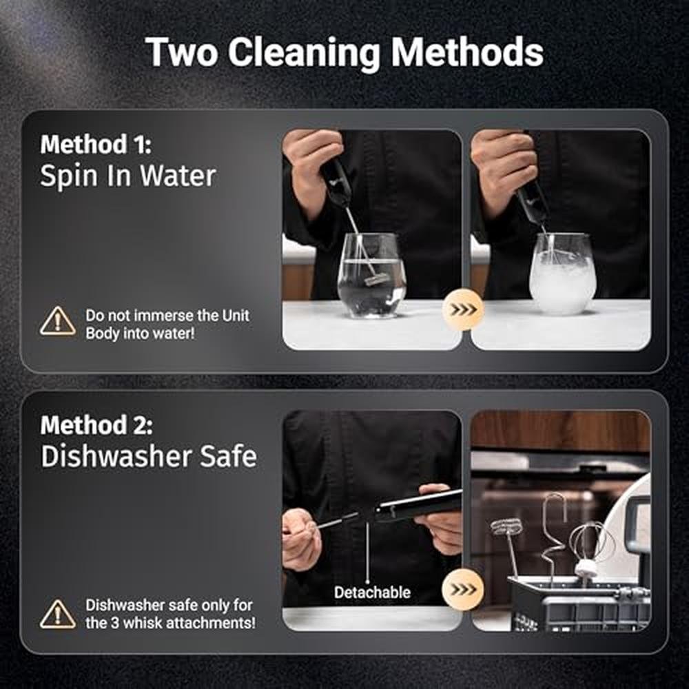 - The detachable double whisk is designed for effortless mixing and frothing, making it easy to create perfect lattes, cappuccinos, and matcha drinks