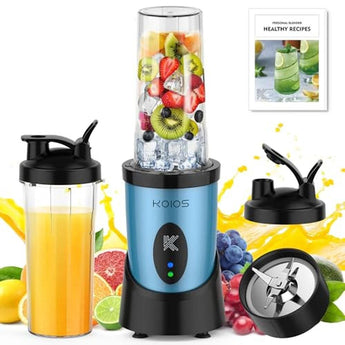 Elevate your blending experience with the KOIOS personal blender, featuring 900W peak power, 2x22oz to-go cups, and a high-quality 4-leaf blade that crushes ice instantly. This top-tier blender is designed for those who demand the best, with a focus on high-performance, advanced technology, and exquisite design. Experience the finest in blender smoothies with the KOIOS Peak 900W Personal Blender, your ultimate companion for kitchen shakes and smoothies.