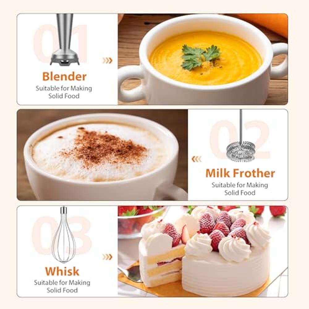 Indulge in the world of premium blending with the KOIOS Immersion Blender, a 1000W anti-scratch 3-in-1 hand blender that redefines cooking and food preparation. As a top-tier blender model, this upgraded stick blender features a 12-speed stainless steel blade, turbo mode, whisk, and milk frother, all constructed with non-BPA materials for safe and healthy use. Whether you're a professional chef or a home cook, this versatile blender is perfect for soups, sauces, batters, and more, and its ergonomic design makes it comfortable to hold and maneuver. With its powerful motor and multiple attachments, you can unlock a world of culinary possibilities. Experience the ultimate in blending convenience and elevate your cooking to new heights with the KOIOS Immersion Blender.