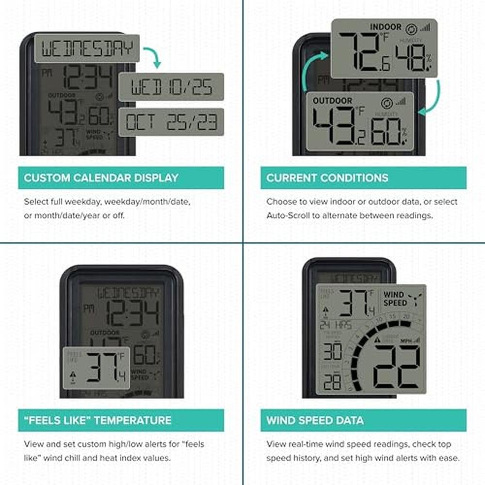 | Special Feature | Clock, Customizable Alert, Weather Resistant, Wireless |