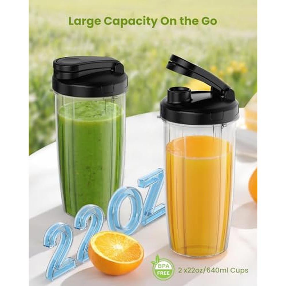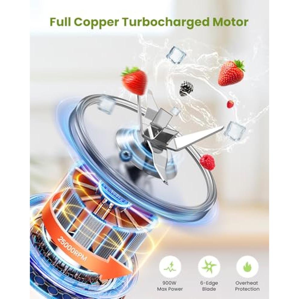 Specfic: Powerful Motor: This small blender packs a 900W punch. It can take on tough foods and run for extended periods without overheating, so you can blend to your heart's content. Six Stainless - Steel Blades: With six blades, it's a breeze to process dense fruits and veggies. Plus, stainless - steel blades are way more durable and sharper than plastic ones. Exceptional Blending Results: Whether you're whipping up fresh fruit juice, a protein shake, baby food, or a frozen beverage, this blender for kitchen does an amazing job of creating a smooth, even blend. Safe Cups and Lids: The cups and lids are made of BPA - free plastic. You can use them without a second thought as the material is completely safe for your health. What's in the Package: 1*Motor Base 1*6-leaf Blade 2*22oz Portable Cups 2*Lids 1*Instruction