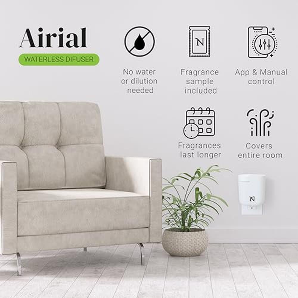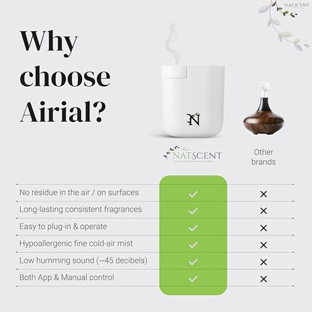 Experience the transformative power of scent with Natscent Airial Plug-in Essential Oil Diffuser. Elevate your home or office ambiance with our premium-grade essential oil diffuser, designed to provide a superior scent experience. Our device features advanced waterless cold-air technology, Bluetooth connectivity, and a user-friendly app, allowing you to customize your scent experience with ease. Whether you're looking to unwind after a long day or boost your productivity, our essential oil diffuser is the perfect solution.
