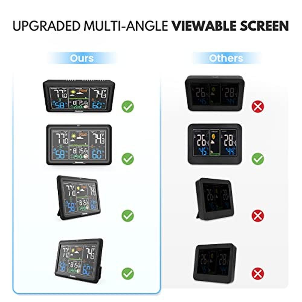 • [Super Wide Range of Viewing Angles] The weather station clock adopts an advanced LCD screen, which expands the viewing angle, allowing you to see the screen clearly from any angle, which is very suitable for the elderly.