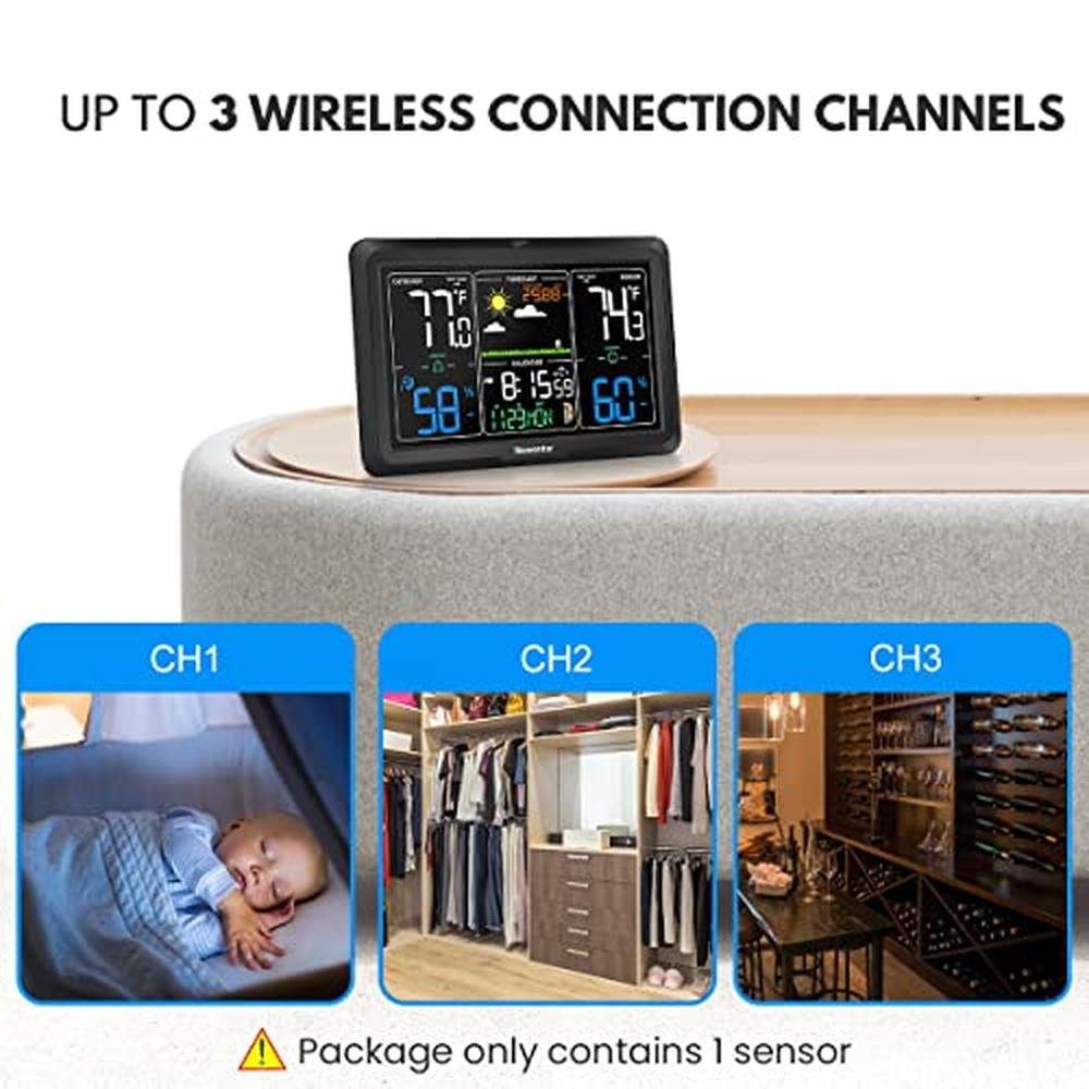 • [Weather Stations Wireless Indoor Outdoor Multiple Sensors] The digital weather station has 3 remote channels, which can detect multiple locations such as baby room, storage room, wine cellar, vegetable shed, etc. Note: the package contains 1 sensor.
