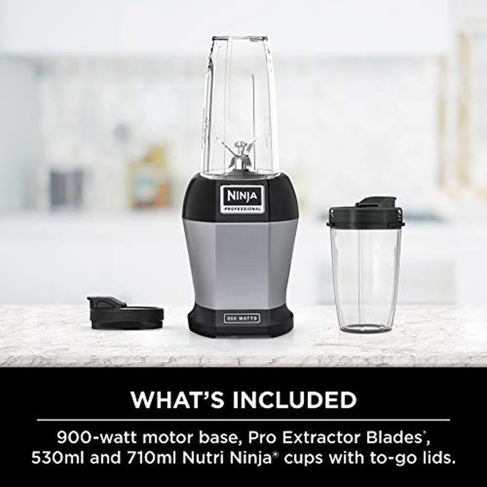 | Included Components | 900W base, 18 oz Tritan Nutri Ninja Cup, 24 oz Tritan Nutri Ninja Cup, (2) Spout Lids, Pro Extractor Blades Assembly, 30-Recipe Inspiration Guide, Instruction Book, Quick Start Guide |