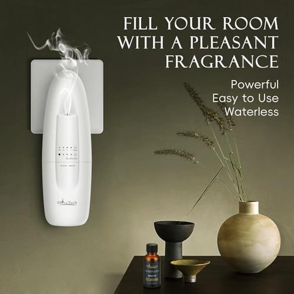 Diffuser Essential Oil | OliveTech Plug-In Waterless Aromatherapy Diffuser | Covers 500 Sq. Ft. | Includes 30ml Essential Oil