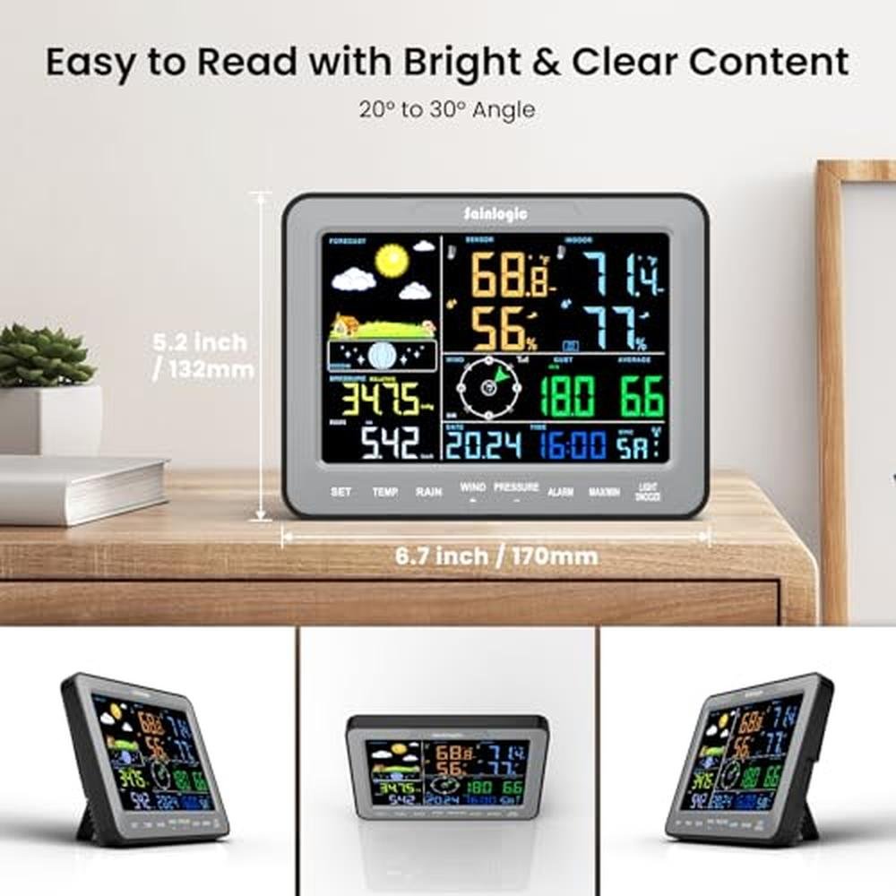 - Easy-to-ReadDesigned specifically for seniors and weather enthusiasts, the 8 display presents data with extra-large, bold fonts and high contrast, ensuring effortless reading and easy data viewing. It is suitable for multiple scenarios, including bedrooms, kitchens, gardens, and backyards. Equipped with three-level adjustable backlighting, it guarantees clear visibility of weather information in both bright and dim environments