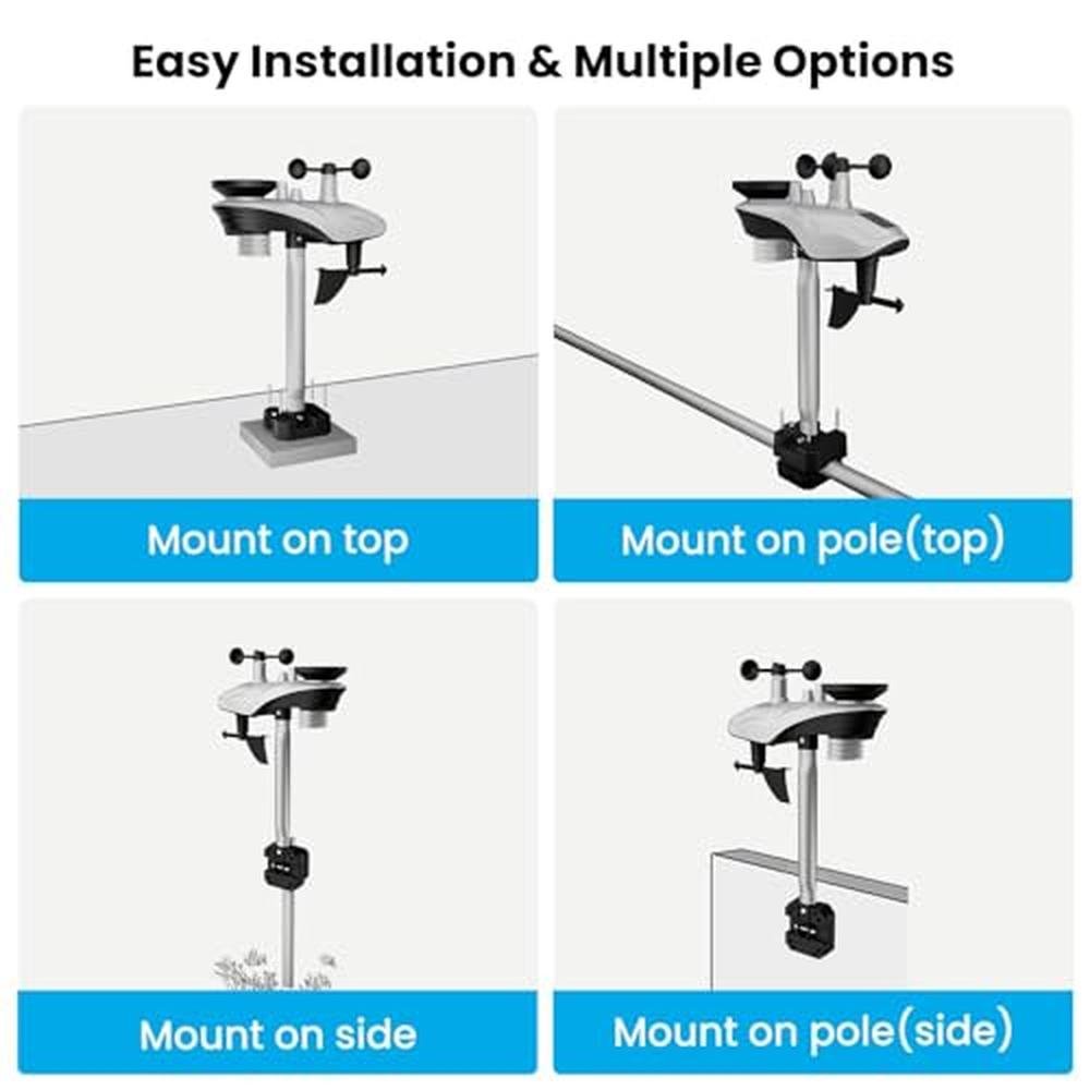 - Easy Installation & SetupBy carefully reading the included user manual, you can easily assemble the sensor on poles or pillars at home (rooftop, back fence, yard), as well as on farms, ranches, and orchards. The indoor display features clearly labeled simple buttons, allowing you to easily adjust settings, check weather data, and customize alerts. Whether you are a DIY enthusiast, gardener, farmer, rancher, or non-technical user, it's extremely easy to get started with