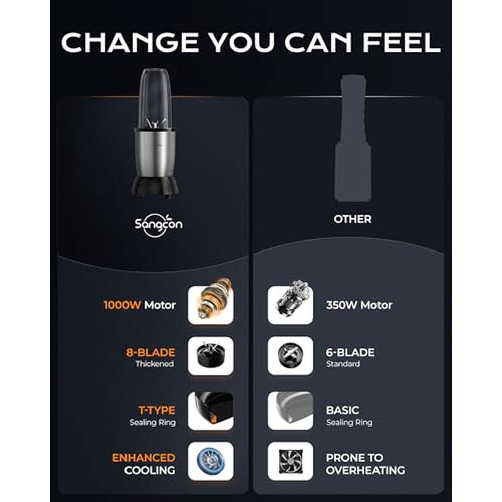 Indulge in the unparalleled performance of the Sangcon 1000W Smoothie Blender, expertly crafted to elevate your kitchen experience. As a superior blender, the Sangcon blender excels in blending an array of delicacies, including smoothies, shakes, frozen fruit, baby food, and spices. Accompanied by 24oz, 19oz, and 10oz BPA-free cups, this portable personal blender is ideal for both on-the-go use and home meal preparation. Whether seeking a reliable blender for daily use or looking to upgrade your current model, the Sangcon blender is an ultimate choice. For those interested in learning more, our resources include a Sangcon blender review, Sangcon blender parts, and Sangcon blender troubleshooting guide.