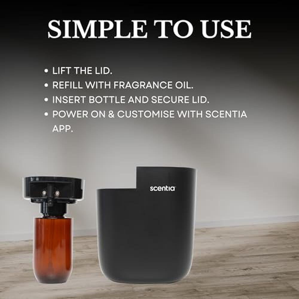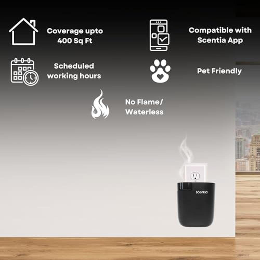 | Special Feature | Black Diffuser Machine, Dual Mode Control by Buttons or Via Bluetooth (Scentia App), No Water Needed, Flameless, Wall Plug-in Diffuser, covers 500 square_feet |