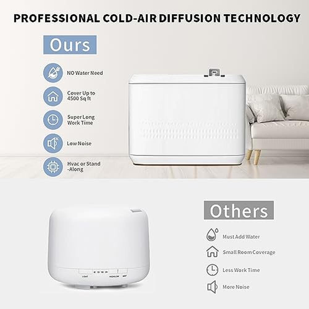 • Large Coverage: Our 850ML HVAC scent diffuser can cover up to 4500 sq. ft., making it ideal for large spaces and commercial settings.