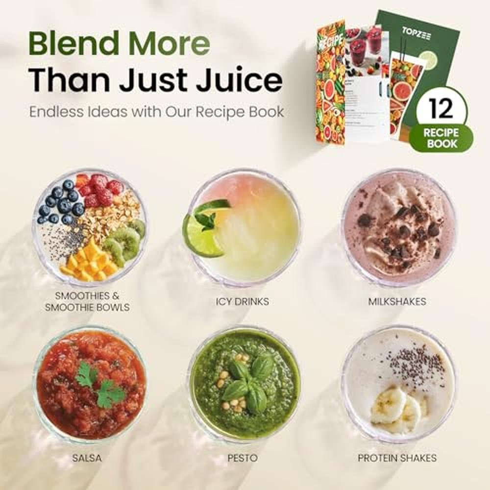 Experience the epitome of blending convenience with the TOPZEE Personal Smoothie Blender, a premium 1000W single-serve smoothie maker expertly designed to craft the perfect protein shakes, frozen drinks, and more. As a top-tier choice for those seeking a reliable and high-performance smoothie Topzee experience, this blender stands out with its powerful motor and portable 24oz travel cups, ideal for on-the-go nutrition or upscale kitchen use. Whether you're looking for a sophisticated Topzee smoothie blender that can handle tough ingredients or simply want to indulge in your favorite smoothies at home or on the move, the TOPZEE Personal Smoothie Blender is the ultimate companion. With its advanced technology and superior design, this blender redefines the art of smoothie making, providing a refined and exquisite experience for the discerning user.