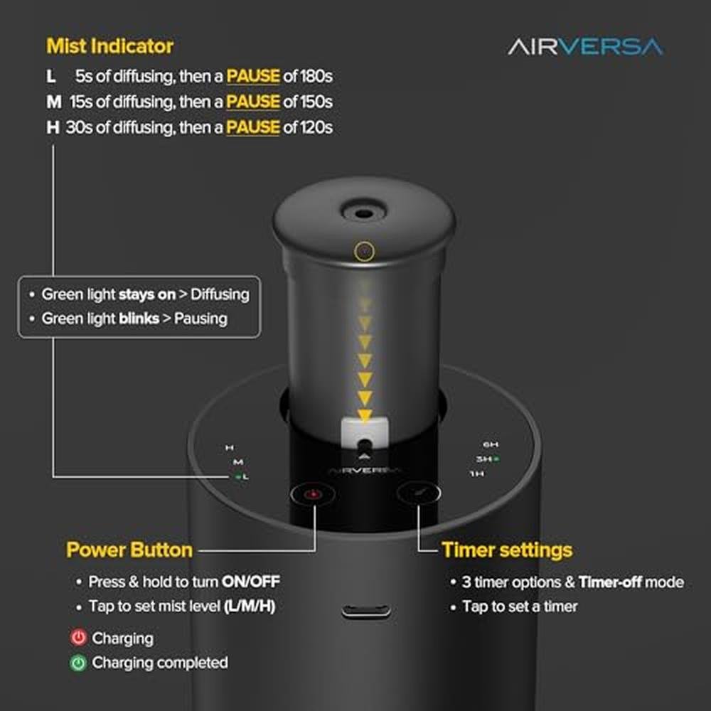Premium Oil Scent Starter Kit | Waterless Essential Oil Diffuser | 30ml Hotel Scent Fragrance Oil | Battery-Operated Mini Scent Air Machine
