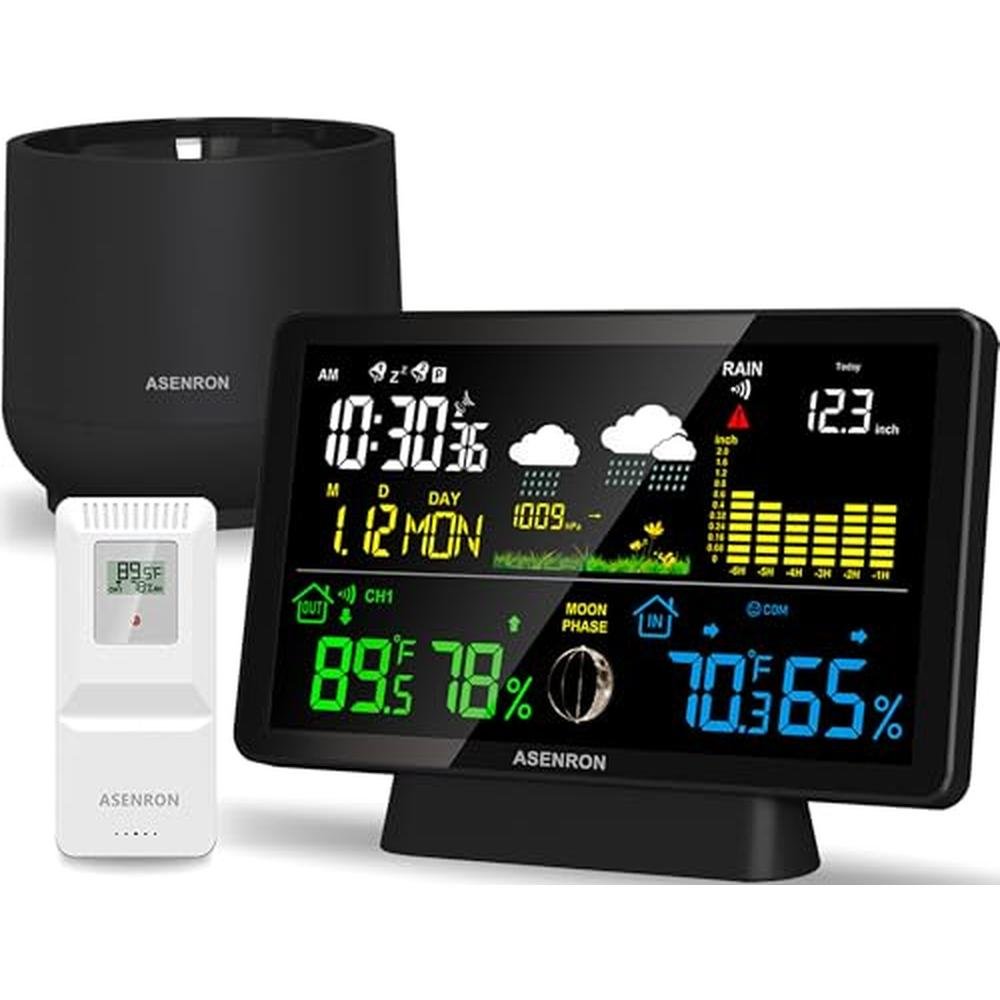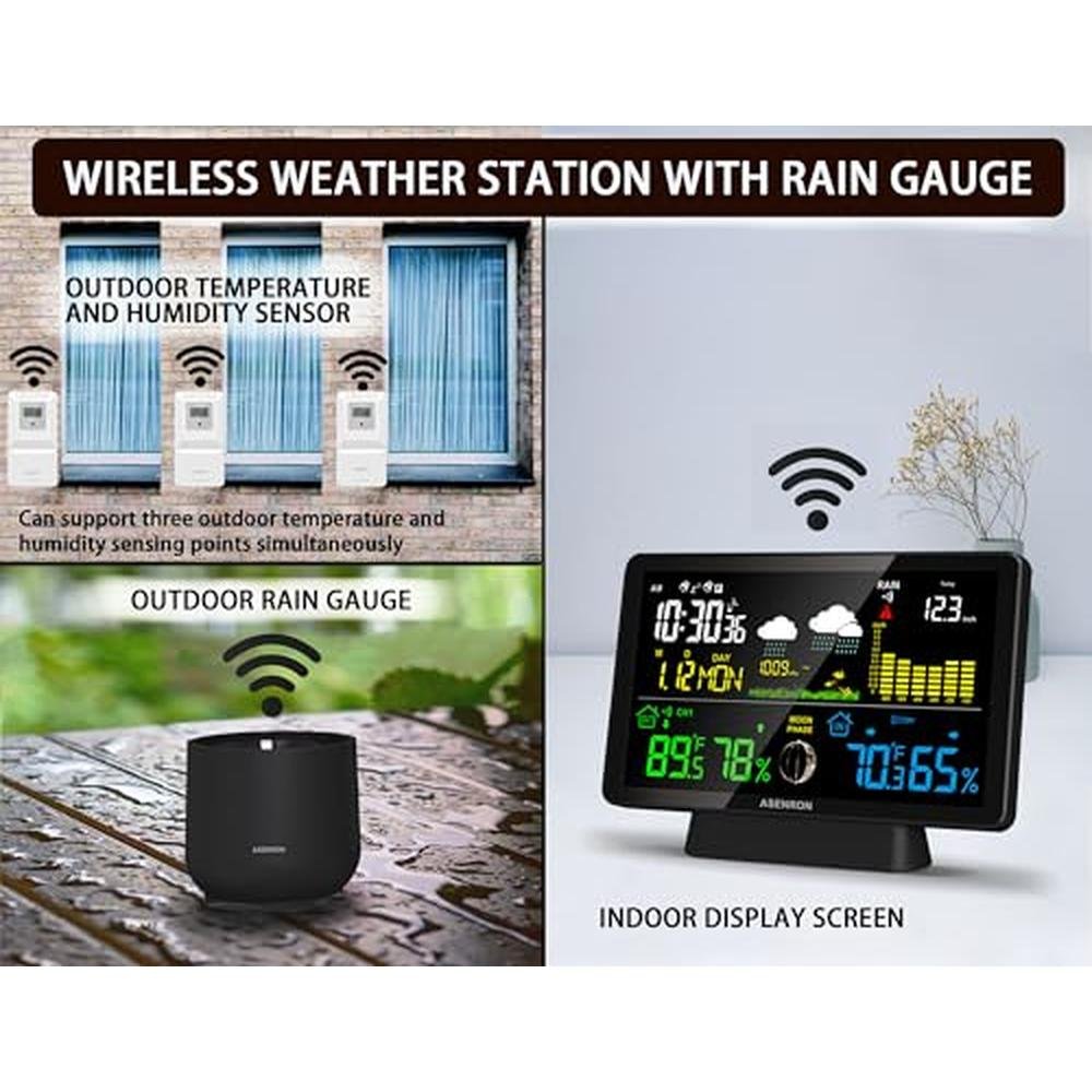 Weather Station with Rain Gauge, Home Weather stations Wireless Indoor Outdoor with Rain Gauge, Thermometer, Barometric Pressure, Humidity Monitor, Atomic Clock, Digital Weather Forecast and Alerts