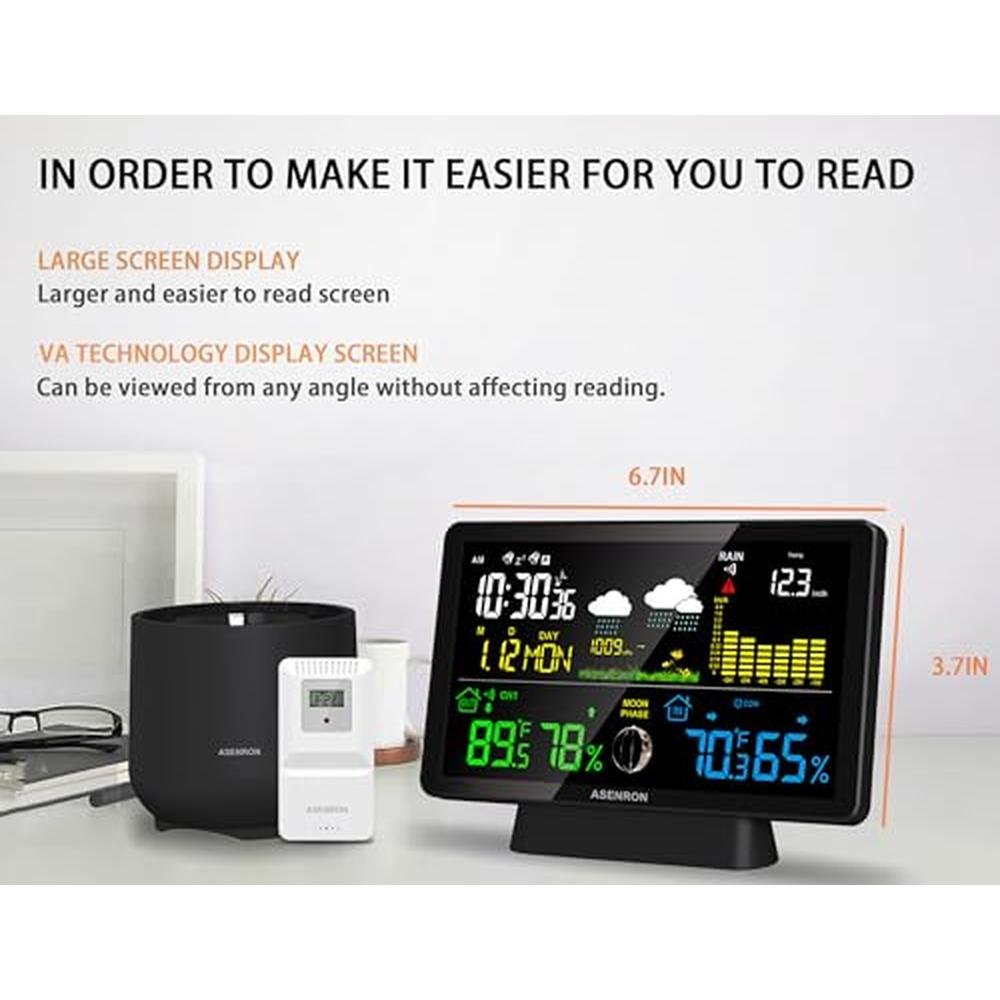 • Multi-functional and Stylish Weather Station --- This home weather station provides extensive information, including indoor/outdoor temperature and humidity, air pressure history, rainfall measurement, moon phase display, weather forecast and trend tracking, outdoor index monitoring, and more. Additionally, it features a dual alarm clock with snooze function and calendar for practical everyday use.