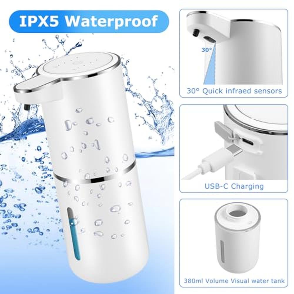 • High Quality and Durable:The foaming soap dispenser has IPX5 waterproof function,so you can use it in wet environments,as long as you ensure that the sensor and charging port are dry! USB is rechargeable and can be used continuously for up to 60 days on a full charge.(Misunderstanding due to differences in usage frequency)
