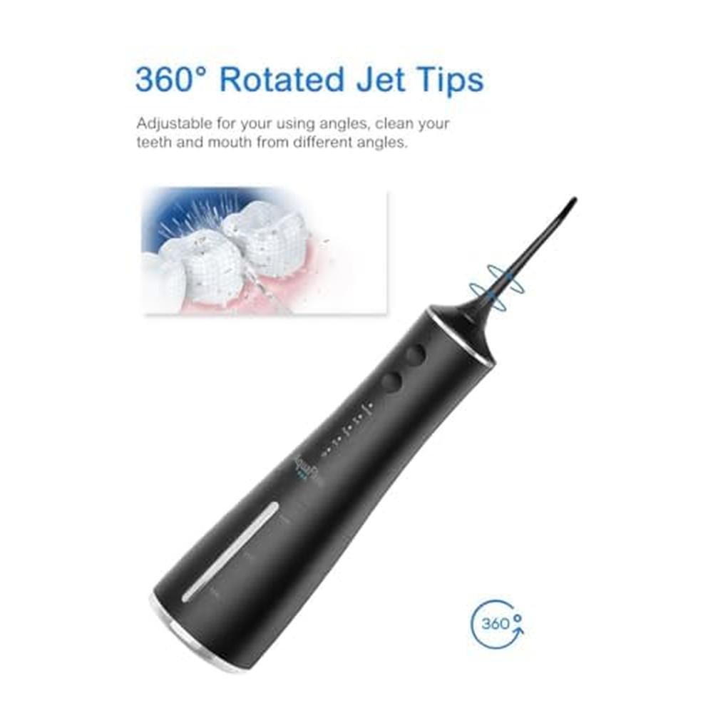 AquaFloss Pro Water Dental Flosser Teeth Pick Portable Cordless Oral Irrigator 300ml Water Tank Rechargeable Travel Teeth Cleaner IPX7 Waterproof Electric Water Flosser BV609 (Black)