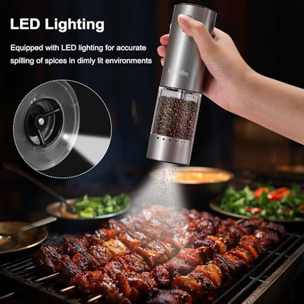 Salt Pepper Grinder Set | Electric Stainless Steel Auto Grinder Mill with 6 Levels Adjustable Coarseness | Refillable and USB Rechargeable with Lights