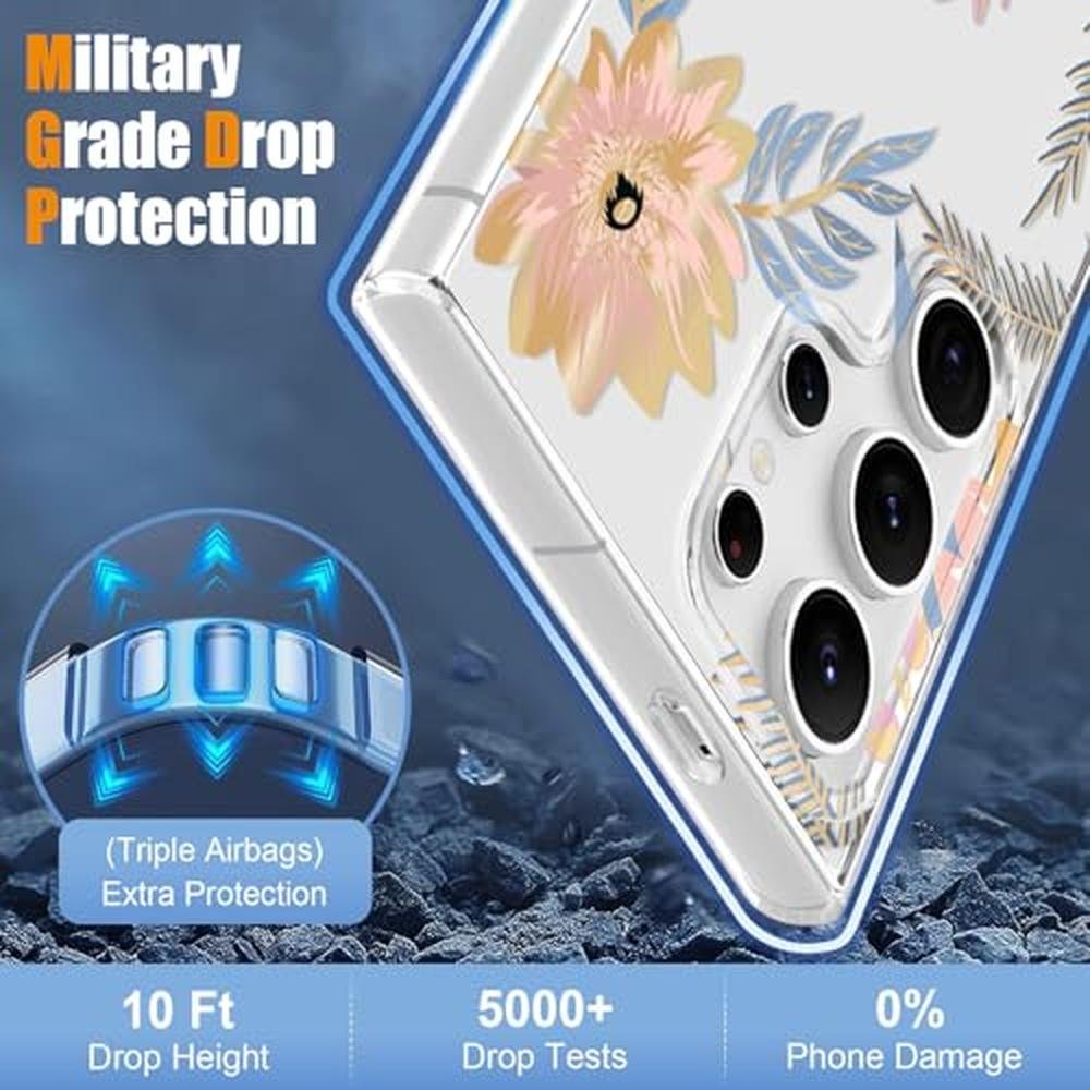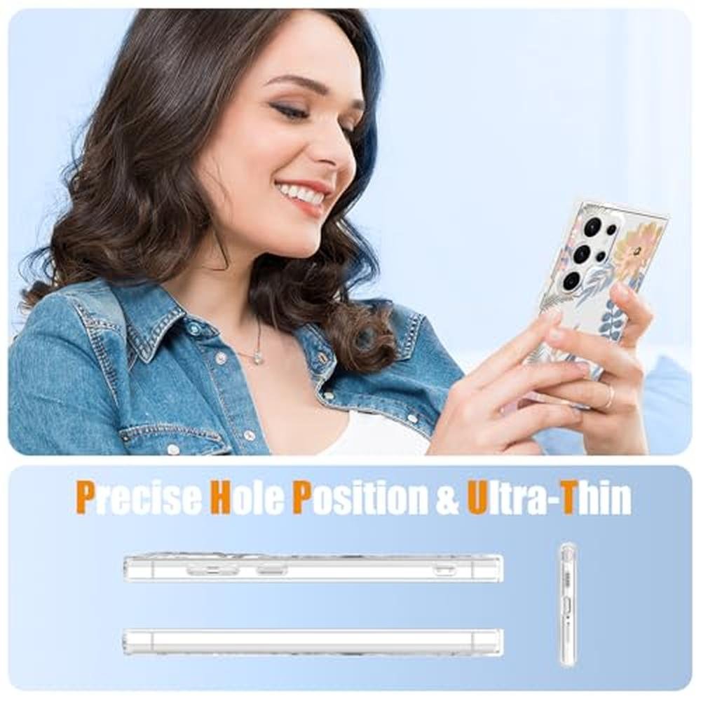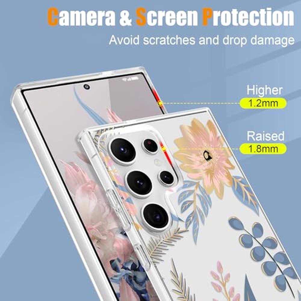 - [Aesthetic Flower Design]Features an elegant transparent design with double-sided embossed technology. The lifelike beautiful flowers on the back are durable and resistant to fading, enhancing the phone's aesthetic appeal, particularly appealing for girls and ladies.
