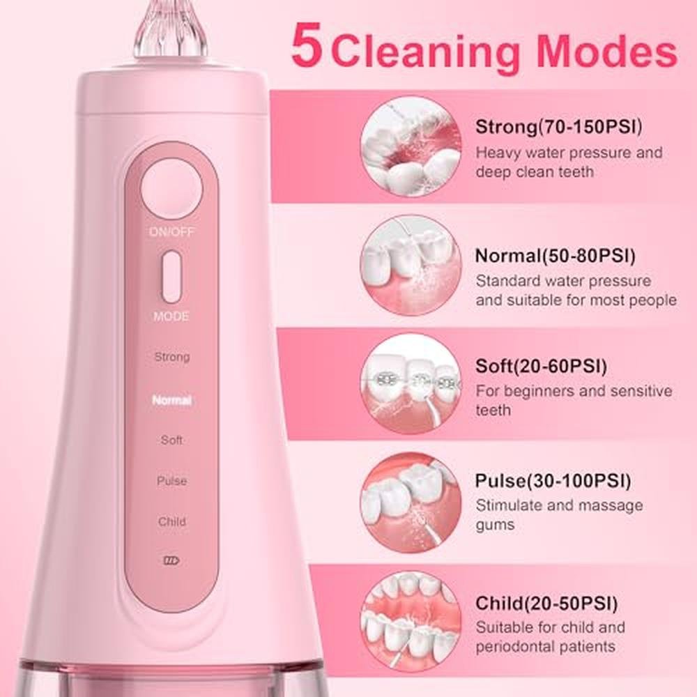 - Customizable Cleaning ExperienceTailor your oral care with the five optional cleaning modes Soft, Gentle, Normal, Strong, and Pulse. Safeguard against any unexpected sprays by placing the nozzle in your mouth before activating. For a gentle introduction, opt for the Soft mode during your first use. Your oral hygiene needs, your choice.