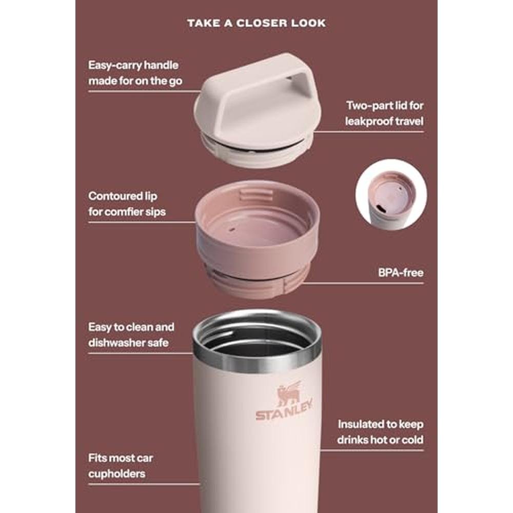 STANLEY Cafe To Go Travel Mug 16 oz | Leakproof Two-Part Drink Through Lid | Tumbler Cup for Coffee, Tea and Drinks | Insulated Stainless Steel Coffee Mug | BPA-Free | Frost