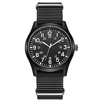 Gosasa Unisex Military Watches Sport Textile Nylon Strap Stylish Men Watch Luminous Fashion Watches Analog Display Quartz Waterproof Casual Wristwatch (R-Black)