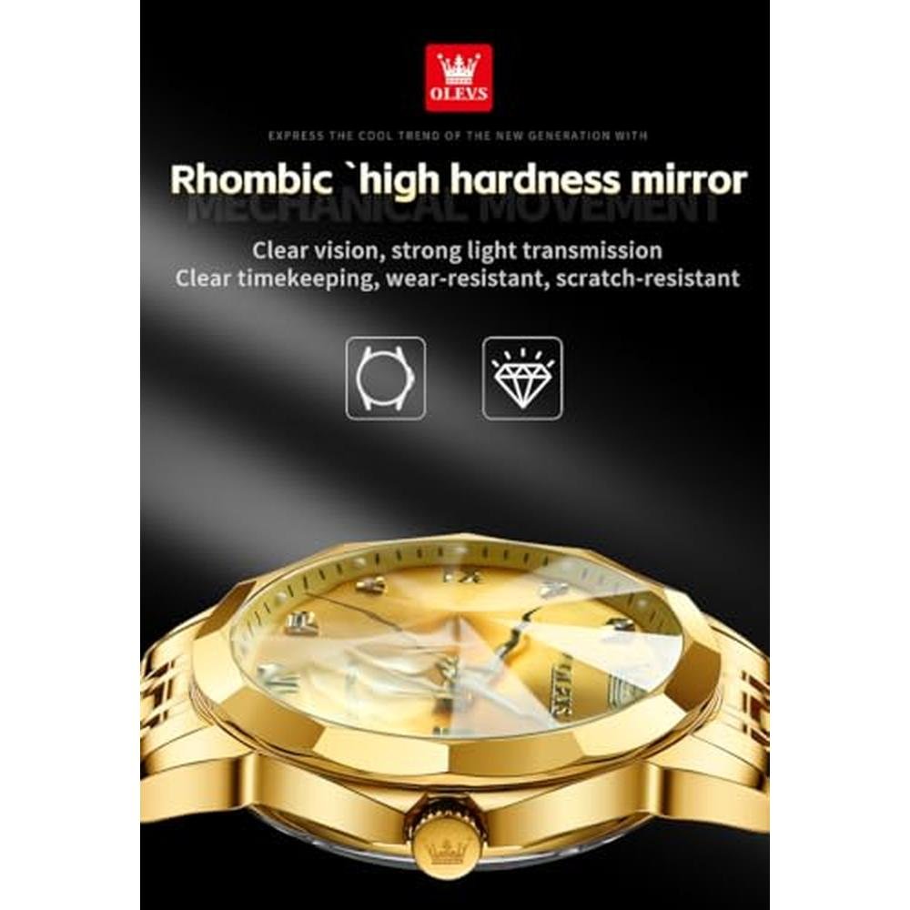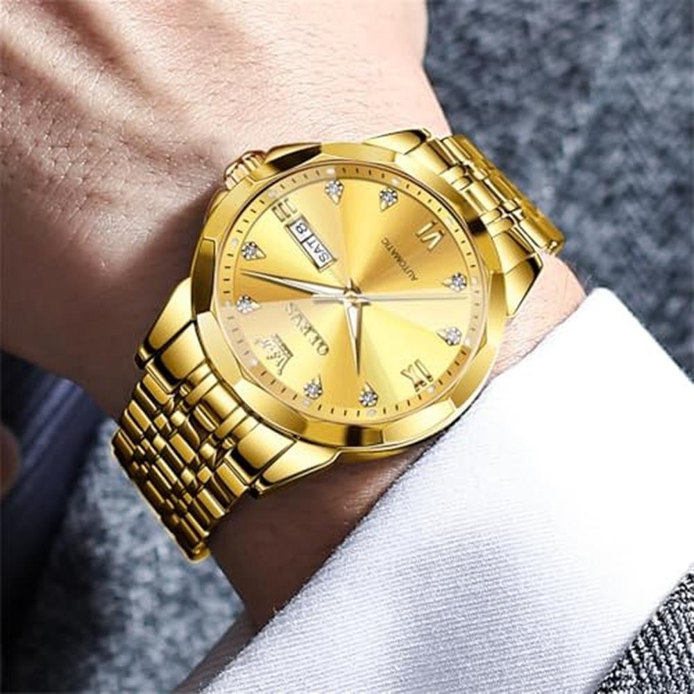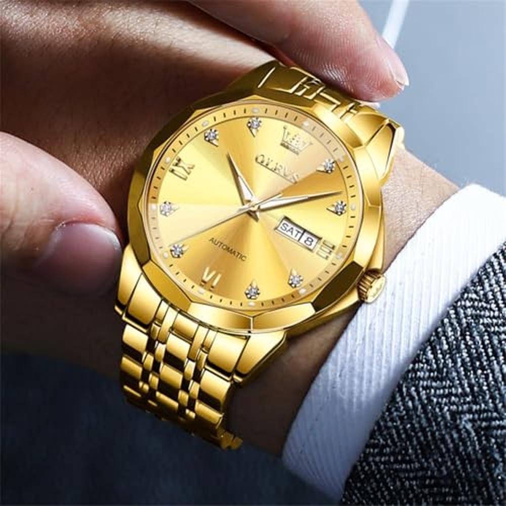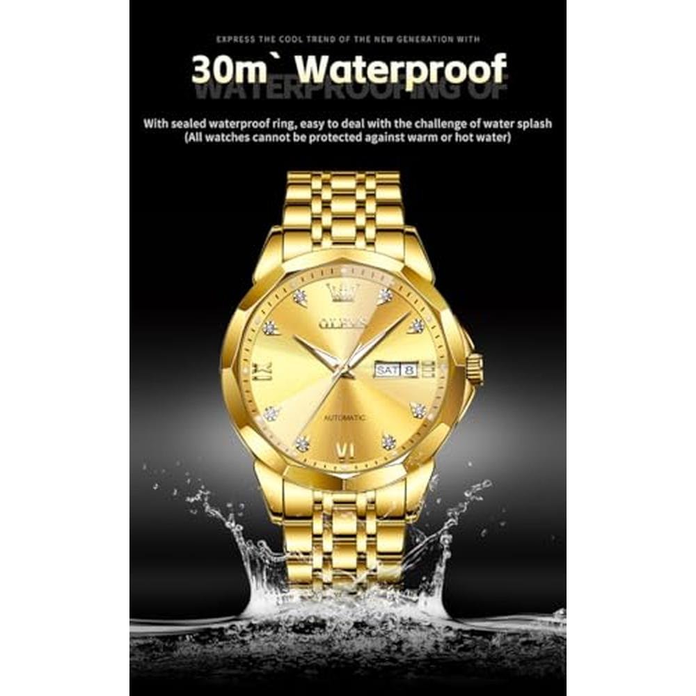 Exclusive Luxury Watches | OLEVS Automatic Men Gold Mechanical Business Dress Stainless Steel Waterproof Luminous Calendar Wrist Watch Male