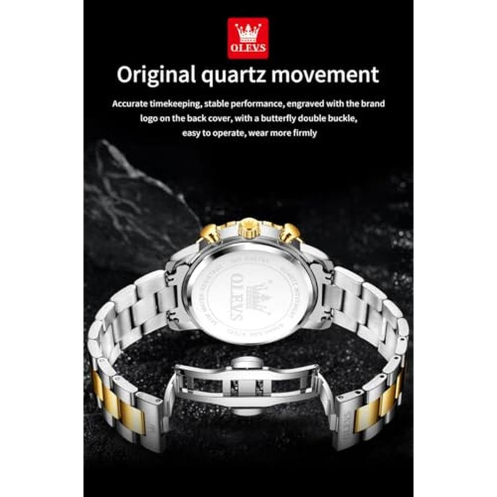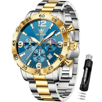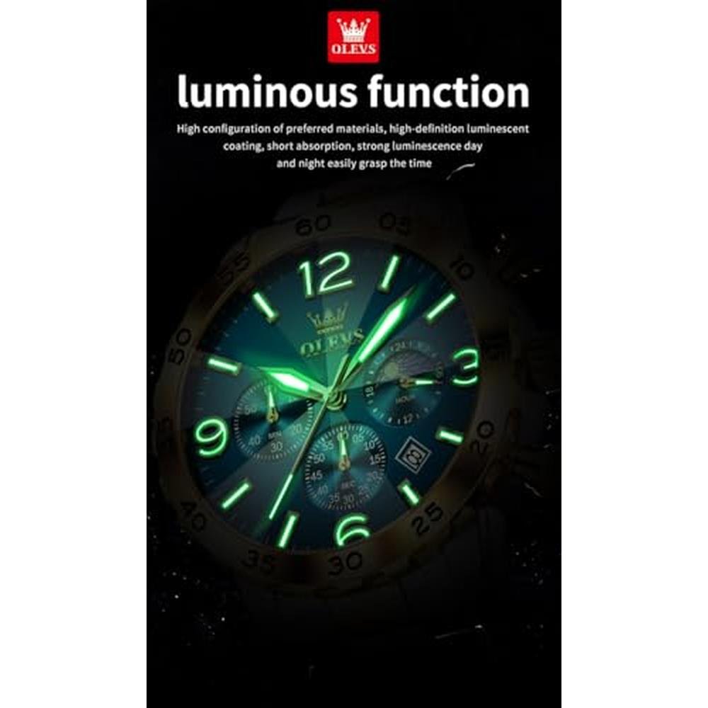 Immerse yourself in the world of high-end timepieces with the OLEVS Blue Chronograph Watch, crafted specifically for discerning gentlemen. This exceptional luxury watch boasts a precise chronograph quartz movement, ensuring impeccable timekeeping and style. Featuring a large stainless steel case, the watch exudes sophistication and elegance, while its waterproof design guarantees it can withstand the demands of your active lifestyle. The luminous display provides exceptional visibility in low-light conditions, making it perfect for formal events or everyday wear. Elevate your style with the OLEVS Blue Watch, a true masterpiece of horology.