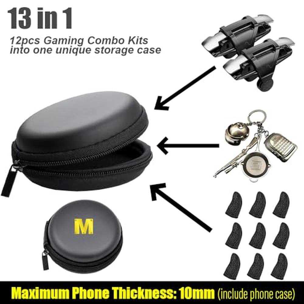 Elevate your mobile gaming experience with our premium 13-in-1 multi-functional game controller for PUBG, Fortnite, and Call of Duty Mobile on your iPhone or Android phone. Featuring L1R1 triggers for enhanced gaming performance and 9pcs finger sleeve gloves for improved grip and comfort.
