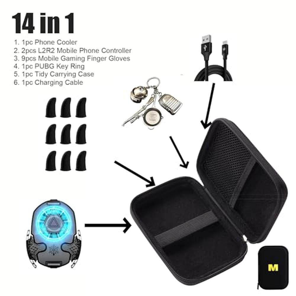 Pubg Phone Triggers | 14 in 1 Premium Gaming Controller with Cooling Fan | Enhanced Mobile Gaming Experience