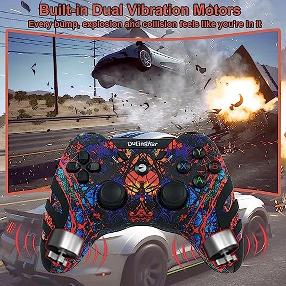 DuLingKer PC controller features advanced 2.4G wireless technology that provides a stable and reliable connection to your gaming console or PC. Designed with ergonomics in mind, our controller fits comfortably in your hands, even during long gaming sessions. The responsive buttons and triggers provide precise control, allowing you to execute even the most complex moves with ease. To connect the controller to your PS3/PC/TV: 1. Insert the wireless receiver into the USB port and press the HOME button to enter pairing mode. 2. Once connected, the LED1 light will remain on. 3.It supports X-Input mode for use on PC, and D-Input mode can be activated by holding down the HOME button for 5-7 seconds. Please note: 1.Fully charge before first use the controller. 2. Reset through small hole on back if abnormal behavior occurs. 3.Do not use mobile phone fast charger to charge it. 4.Press "SELECT+L3" to turn off controller. Package List: 1 x DuLingKer Game Controller 1 x 2.4GHz USB receiver 1 x Type-C Charging cable 1 x User Manual