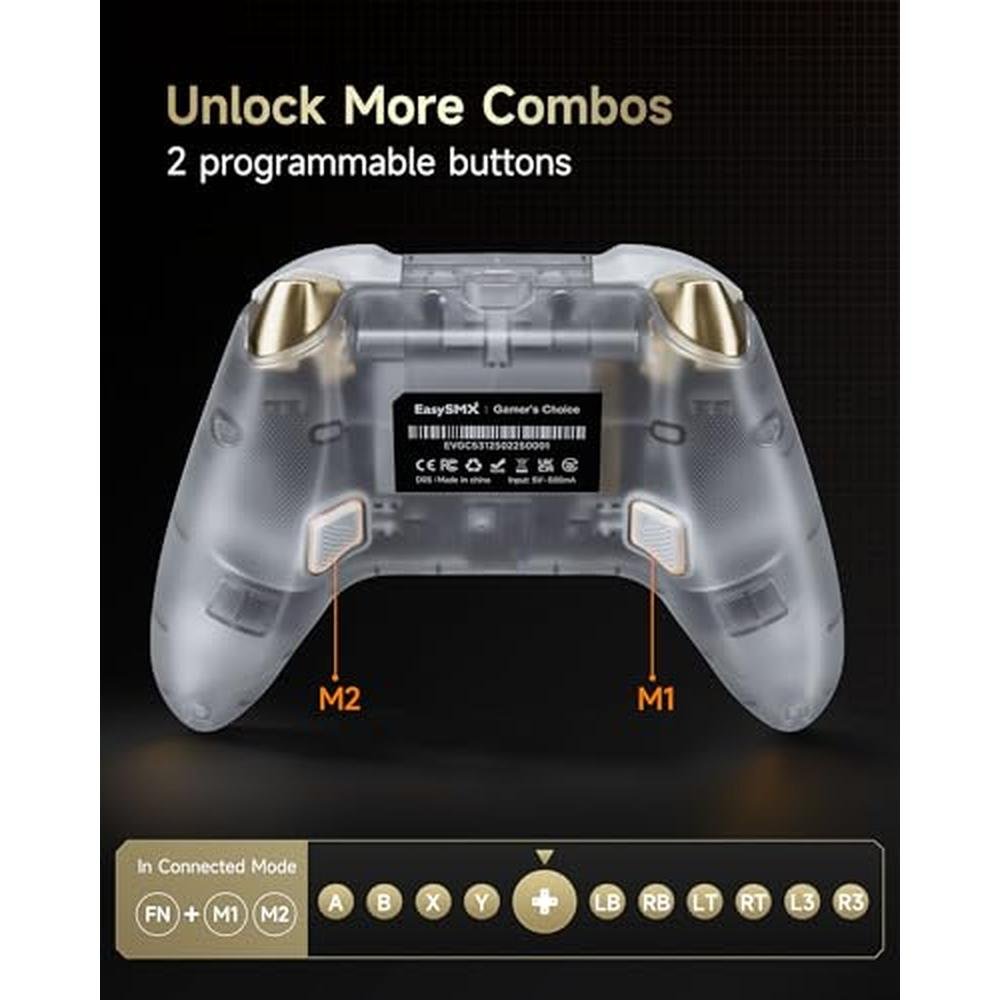 Experience unparalleled gaming excellence with the EasySMX D05 PC Controller, a top-tier wireless Bluetooth pro controller designed for seamless performance on Windows PC, Android, Steam, and Switch. This cutting-edge controller boasts innovative features like a charging dock, hall sensor, and stunning RGB lighting, ensuring a smooth and immersive gaming experience. Say goodbye to stick drift and dead zones, thanks to its advanced technology and precise controls. Whether you're a casual gamer or a hardcore enthusiast, the EasySMX D05 PC Controller is the perfect accessory for taking your gaming to the next level.