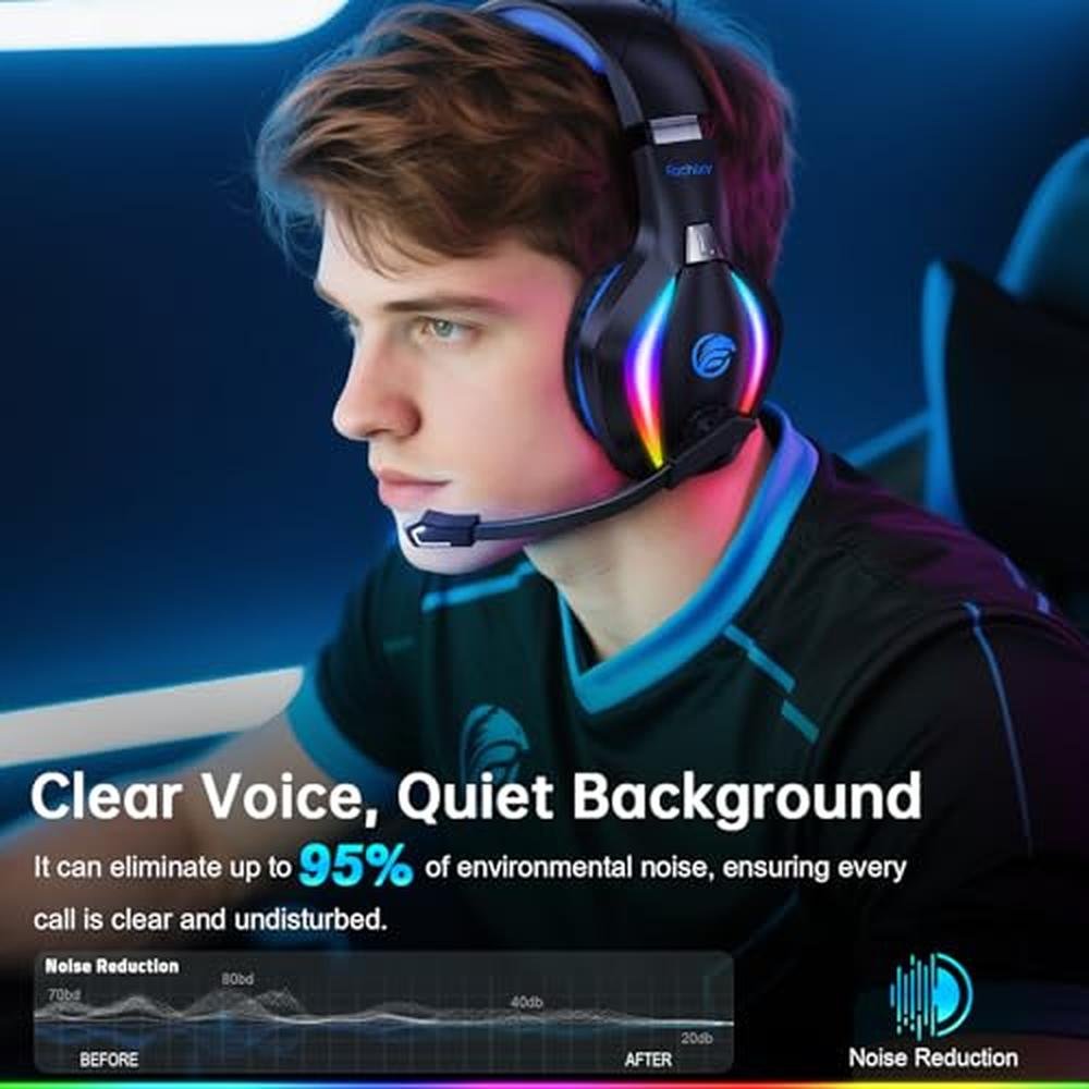 Fachixy FC-100 Wireless Gaming Headset for PS5, PS4, Switch - Gaming headphones with Lossless Audio & 50Hrs Battery Life - Gamer Headset with Microphone for Mac, Laptop, Mobile
