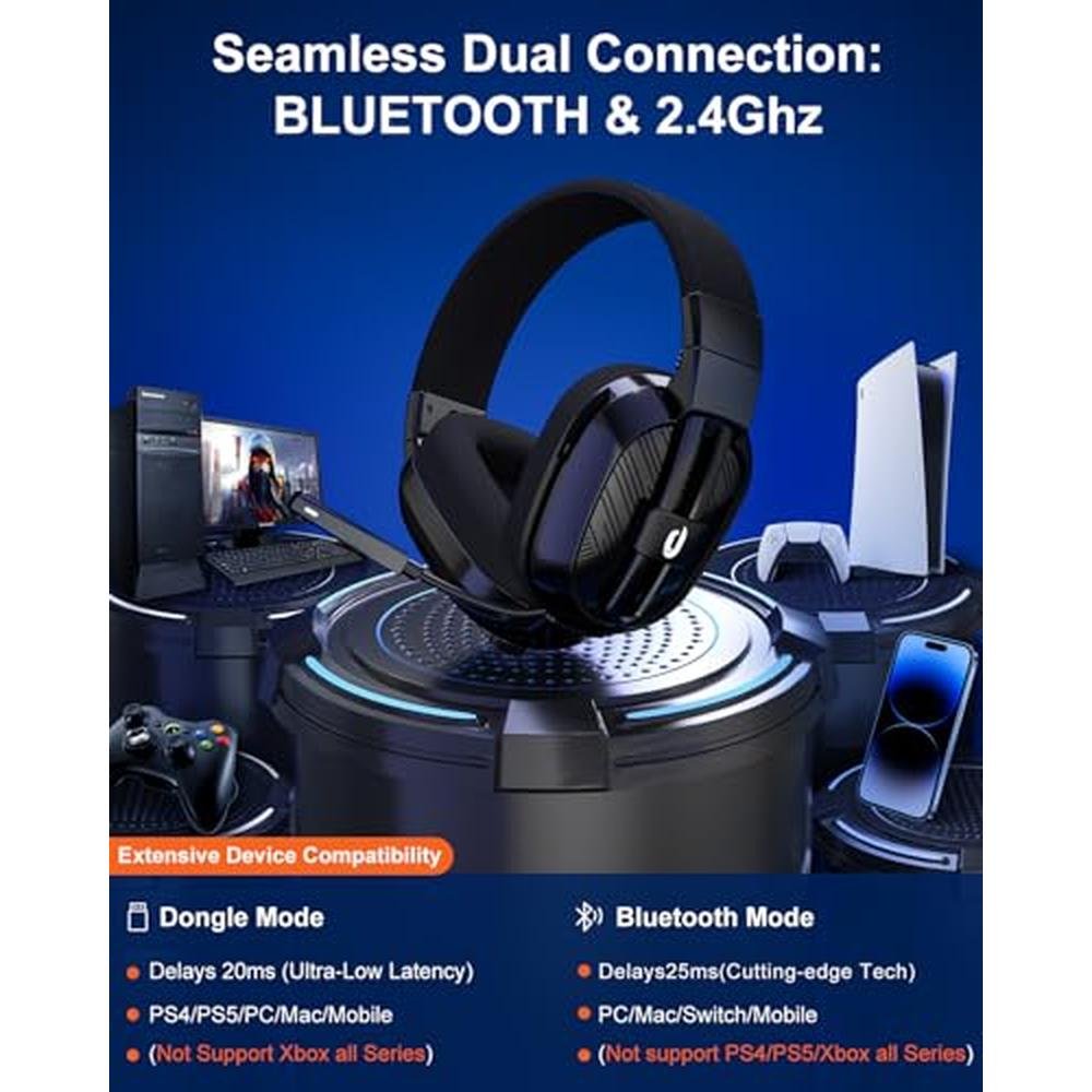 - 2 Connection Ways & Multi-platform Compatibility: G10 wireless gaming headset supports low latency (25 ms), lossless 2.4 GHz USB dongle compatible for PS5/PS4, PC, laptops, Macbook; Bluetooth 5.3 stable connection compatible for smartphones, iPad, Nintendo Switch and other mobile devices; 2 connection ways to meet all your needs, no more worries about device compatibility.(Note: Not compatible for Xbox)