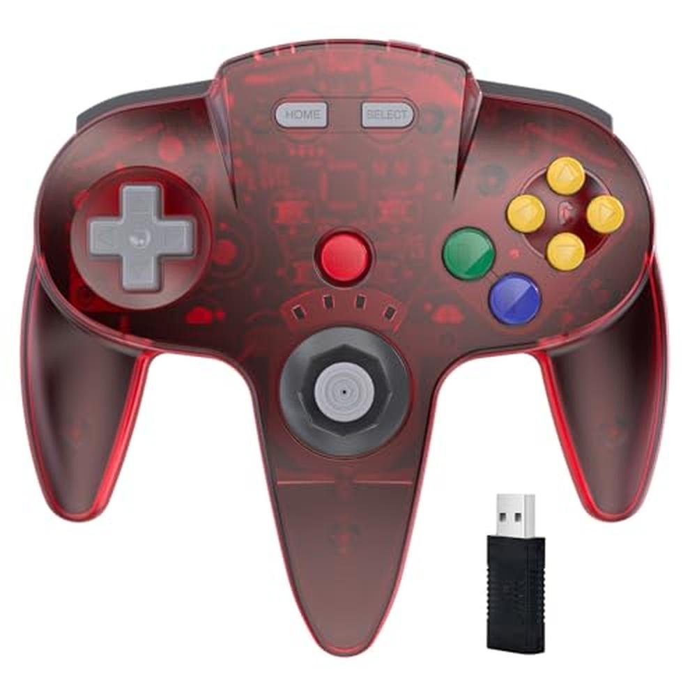 KIWITATA Wireless N64 USB Controller for Switch Games, 2.4ghz Rechargeable Remote Wireless USB Joystick Game Controller for Switch/Switch Lite/Switch OLED, MAC, PC Windows 7,8,10,11 Clear Red