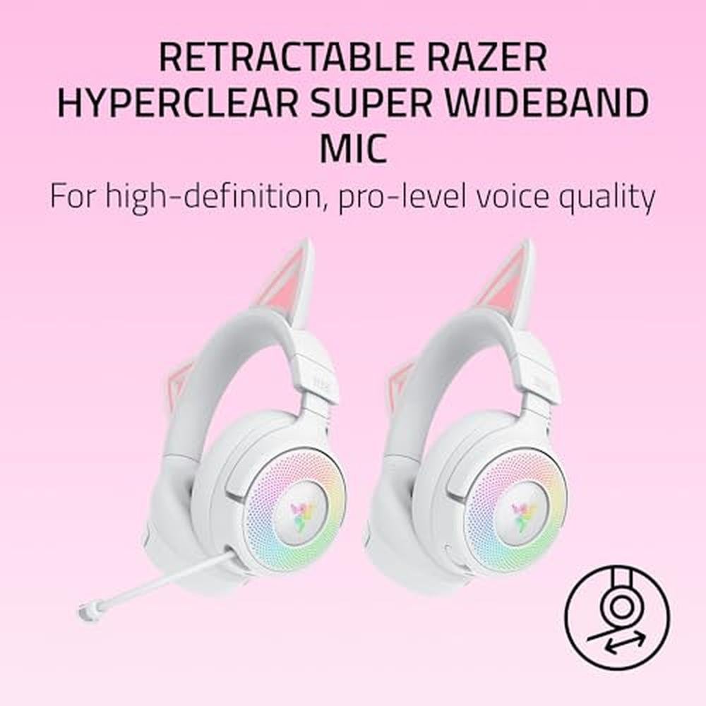 Razer Kraken Kitty V3 Pro Wireless RGB Gaming Headset: Chroma RGB Kitty Ears - 2.4 GHz, Bluetooth 5.3, USB A - Super Wideband Mic - 40mm Drivers - THX Spatial Audio - Comfortable Ear Cushions - White