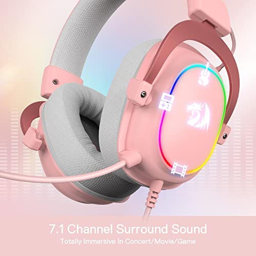 Redragon H510 Zeus-X RGB Pink Wired Gaming Headset - 7.1 Surround Sound - 53MM Audio Drivers in Memory Foam Ear Pads w/Durable Fabric Cover- Multi Platforms Headphone - USB Powered for PC/PS4/NS